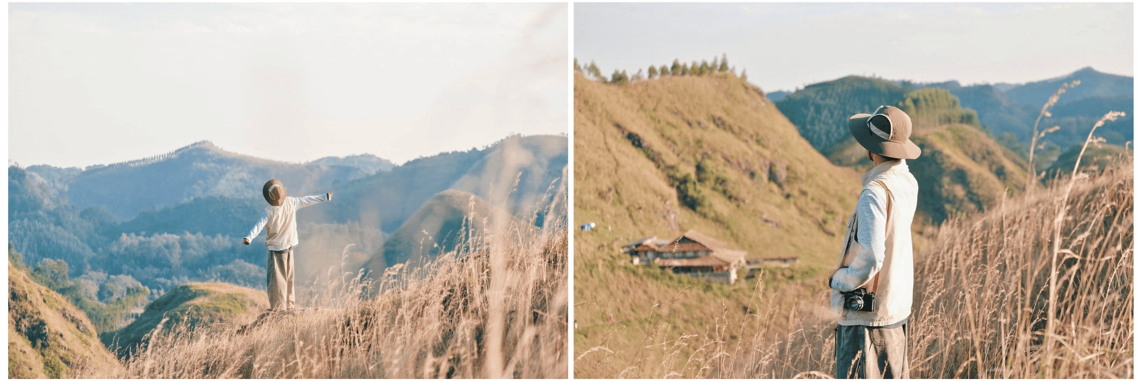 Và đây là đồi cỏ cháy Ba Quáng thuộc xã Vinh Quý, huyện Hạ Lang, cách trung tâm thành phố Cao Bằng khoảng 70km. Năm nay cỏ mọc cao, đẹp, nâu vàng dưới nắng chiều hoàng hôn óng ả trong vắt trong veo.