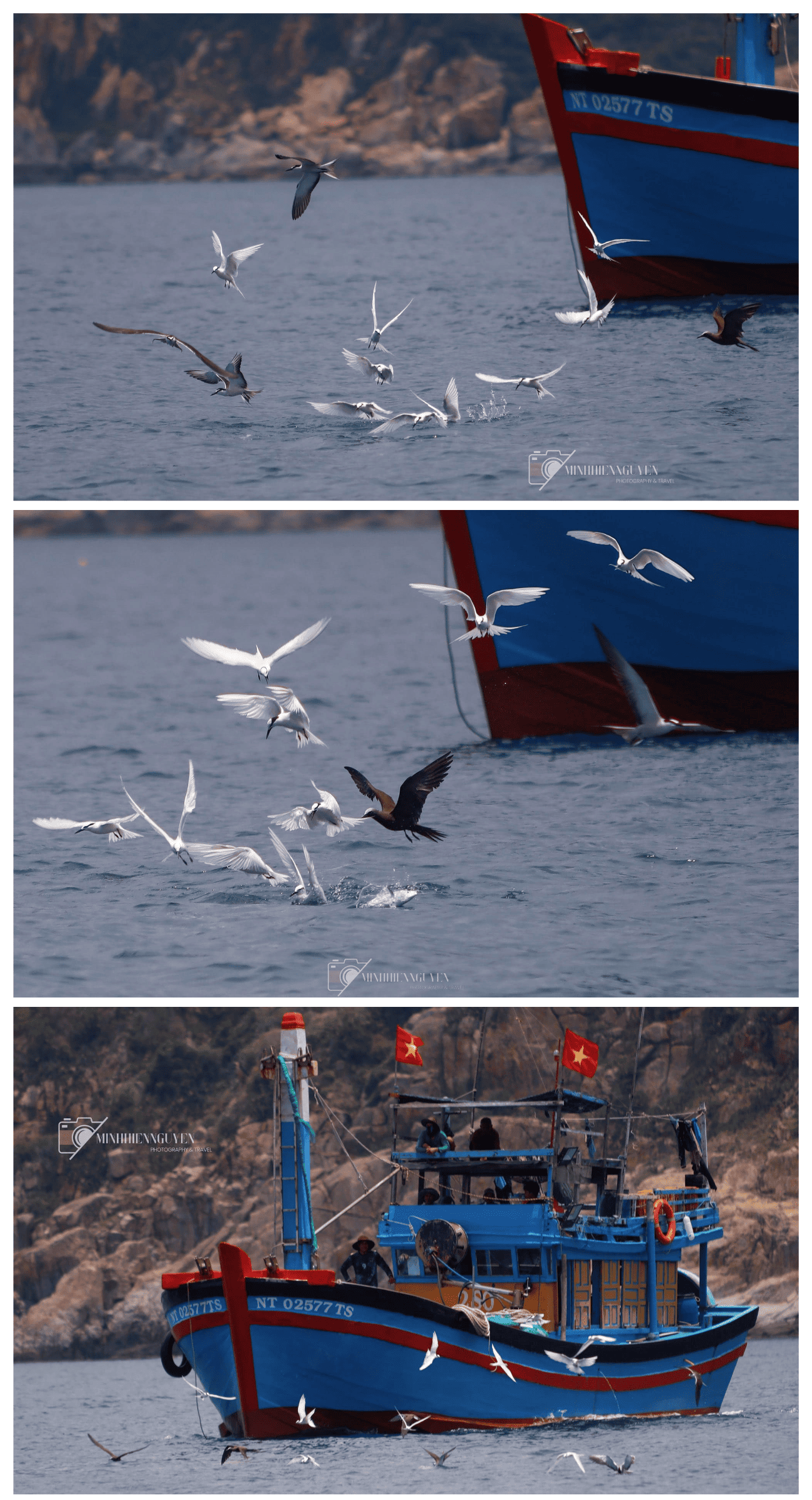 Có những khoảnh khắc tuyệt vời như: đàn chim nhạn múa lượn trên mặt biển, lặn xuống để săn mồi.. kết hợp cả cá nhảy lên mặt nước tạo nên một thiên nhiên thật đẹp trên vùng biển Vĩnh Hy | Ninh Thuận
