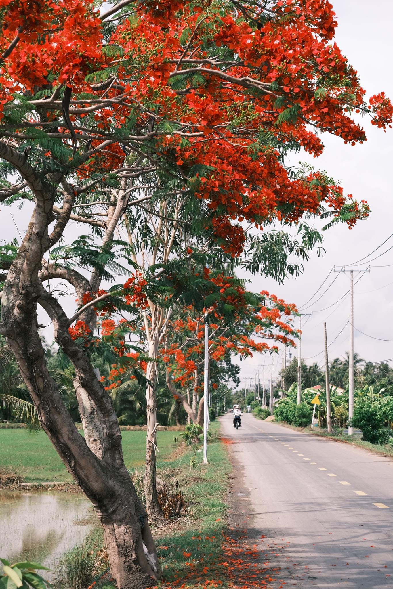 Hoa phượng nở đỏ rực khắp các nẻo đường Miền Tây, báo hiệu mùa hạ sắp bắt đầu