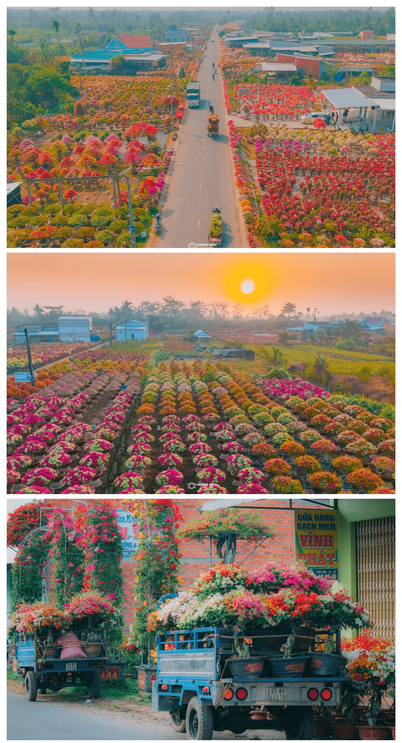 Làng hoa giấy Phú Sơn với những hàng hoa giấy rực rỡ, đa sắc bung nở tự nhiên dọc lối đi, trước hiên nhà. Một thiên đường hoa giấy tại huyện Chợ Lách, Bến Tre cũ...
