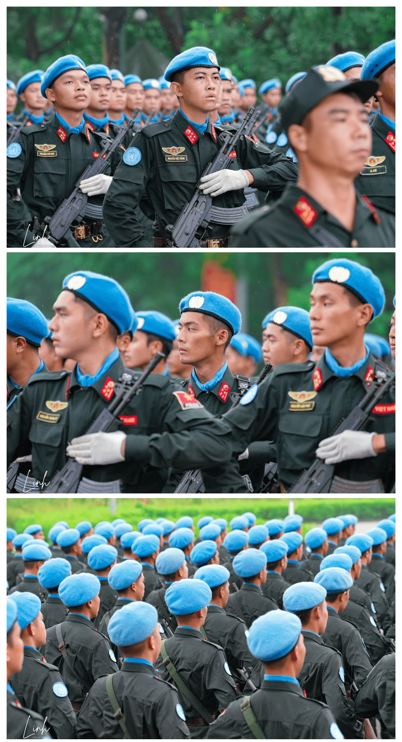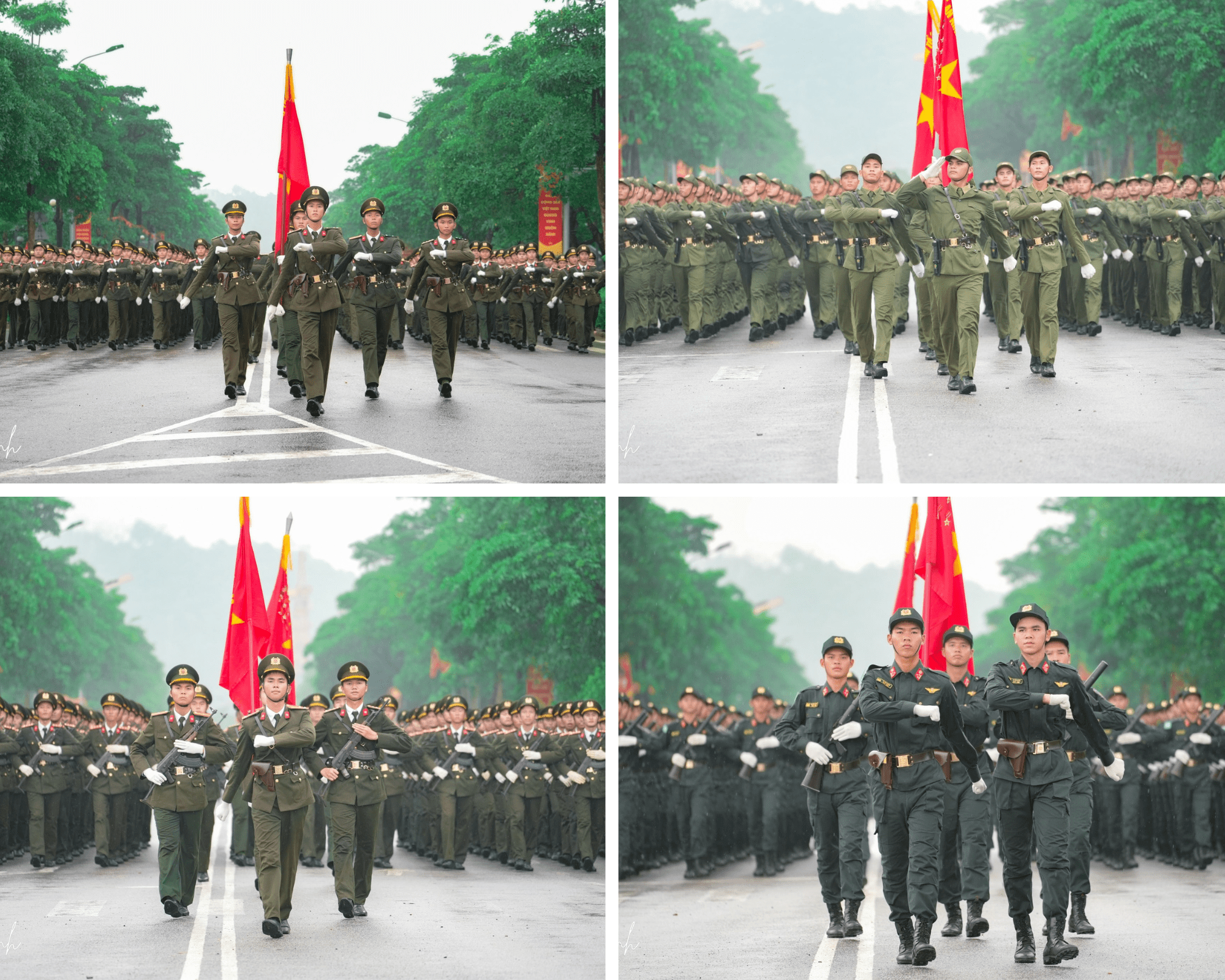 Dù trời đổ mưa vẫn không ngăn được quyết tâm của các khối diễu binh.