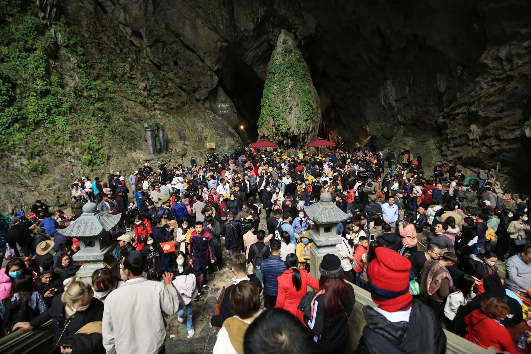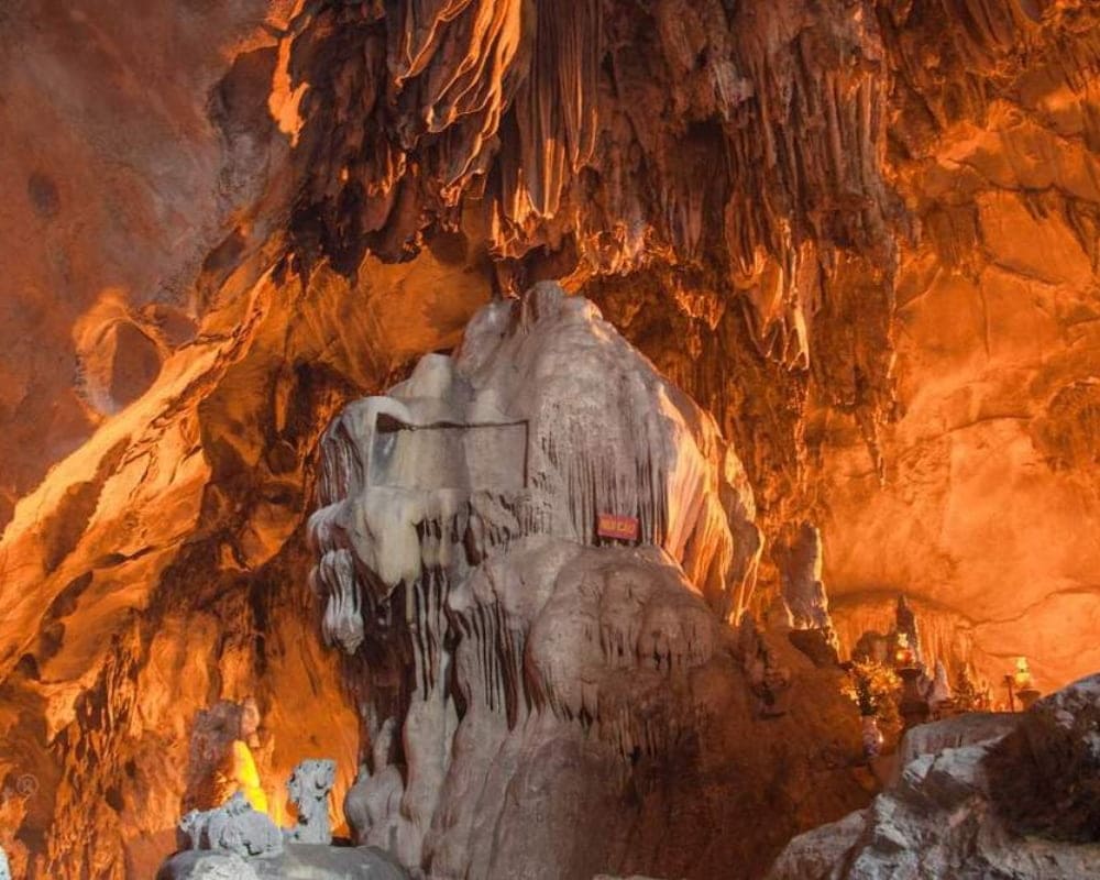 Ở trung tâm động là ban thờ Phật Bà Quan Âm, nơi du khách dừng chân thắp hương, cầu nguyện. Không gian trong động luôn mát lạnh, dù bên ngoài đông đúc, bên trong vẫn giữ được cảm giác trầm mặc, linh thiêng rất riêng.