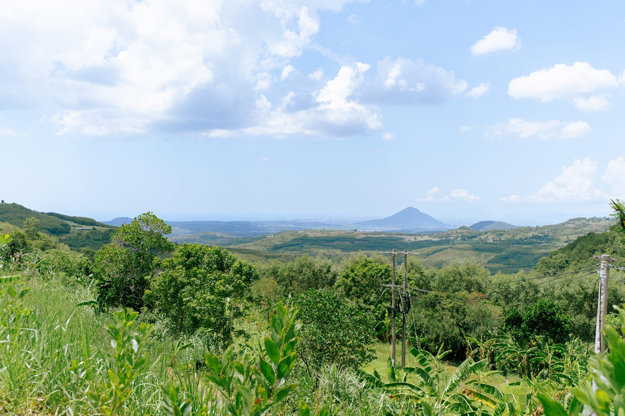 Khác với bầu không khí gần biển, Cao Nguyên Vân Hòa chào đó tụi mình với nhiệt độ khá là dễ chịu, đi qua những rừng keo mát rượi, phóng tầm mắt ra xa đủ có thể thấy được một vùng phía Bắc Phú Yên với hòn Yến với hình dạng vây cá mập độc đáo, bãi biển dài tít tắp, hay nhìn về trung tâm thành phố Tuy Hòa với ngọn núi Chóp Chài sừng sững.