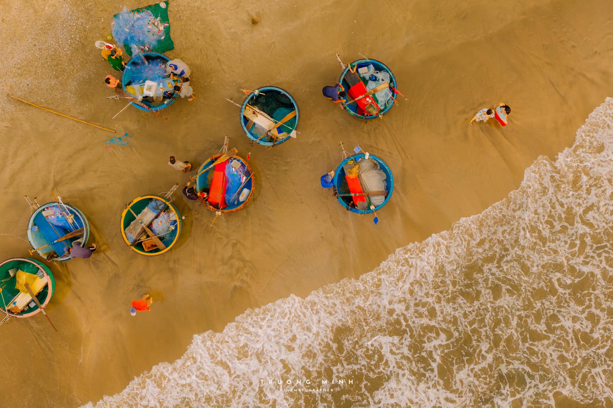 Cuộc sống sôi động tại làng chài, mọi ngư dân hăng say bắt đầu ngày mới trong bức tranh sinh động. Những chiếc thuyền nhẹ lướt trên biển, tạo nên một cảnh đẹp tràn đầy năng lượng và sự hứng khởi của một ngày mới.