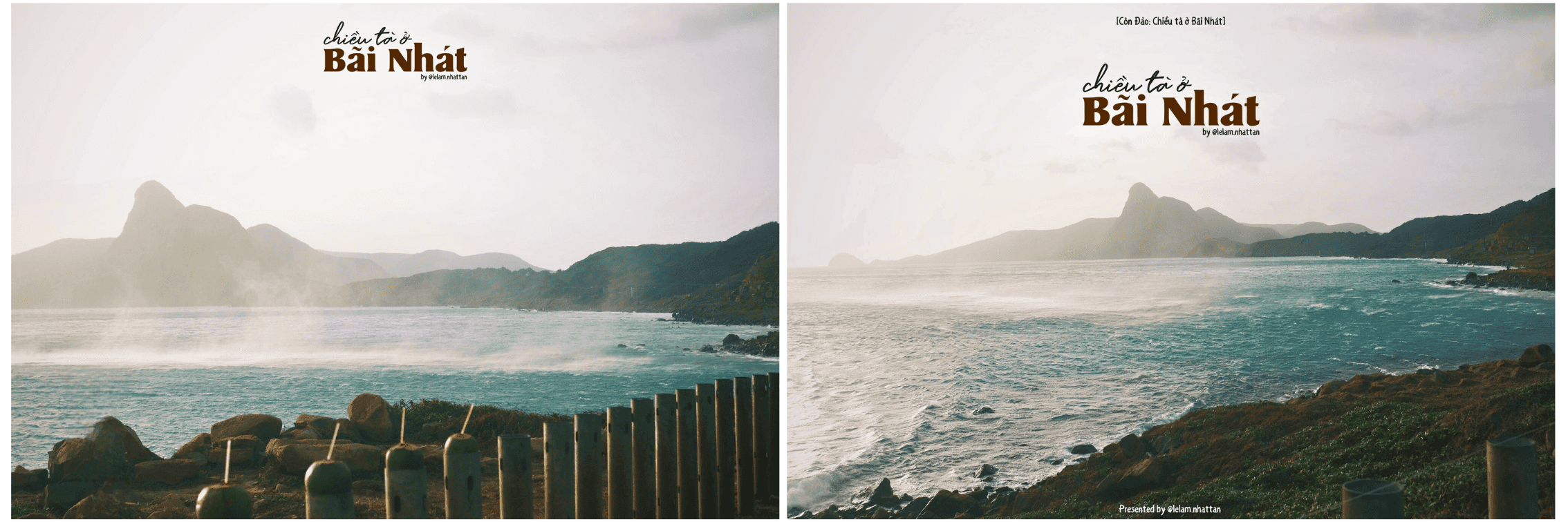 Vì mình đi mùa gió chướng nên gió rất mạnh, cứ phà thẳng vô mặt không thôi. Có lúc gió mạnh tới nỗi cuốn cả nước biển từ dưới tạt lên nữa.