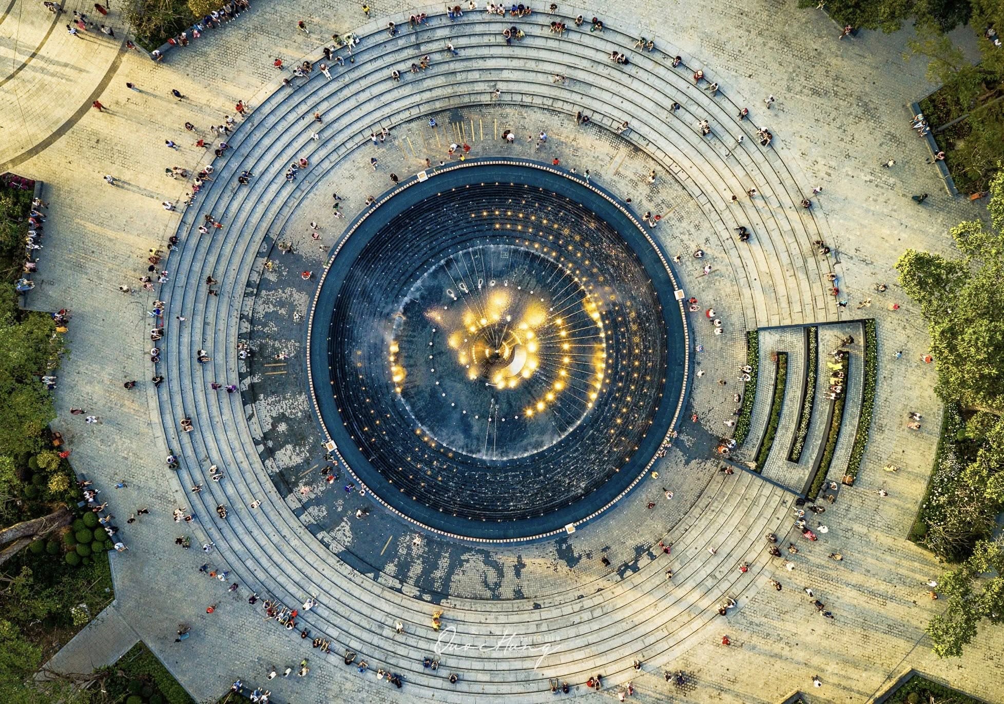 Từ trên cao nhìn xuống. Các vòng tròn đồng tâm với ánh đèn ở giữa, như những lõi năng lượng khổng lồ từ một Di tích cổ đại vậy. Cứ như bước ra từ một bộ phim của Ghibli