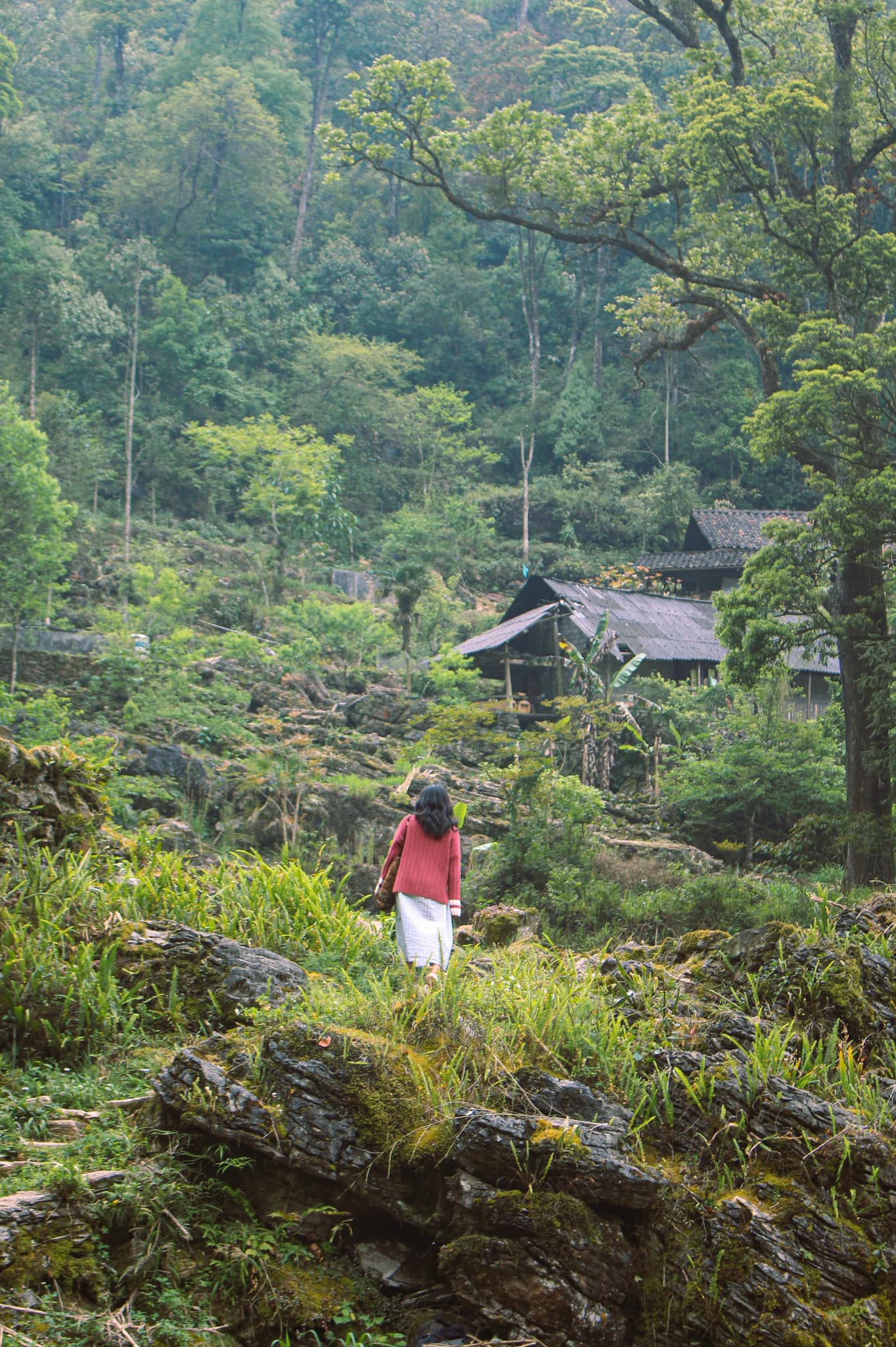 Ngôi làng được biết đến với vẻ đẹp ma mị, được bao phủ bởi sương khói, rừng trúc và những cây cổ thụ lâu năm. Mình ghé làng vào ngày có nắng, nên sương mù cũng tan đi, vườn rau cải “khổng lồ” nở hoa vàng sặc sỡ, cùng với nụ cười trong trẻo của các bạn nhỏ trong làng, ngôi làng trở thành một bức tranh thật yên bình!