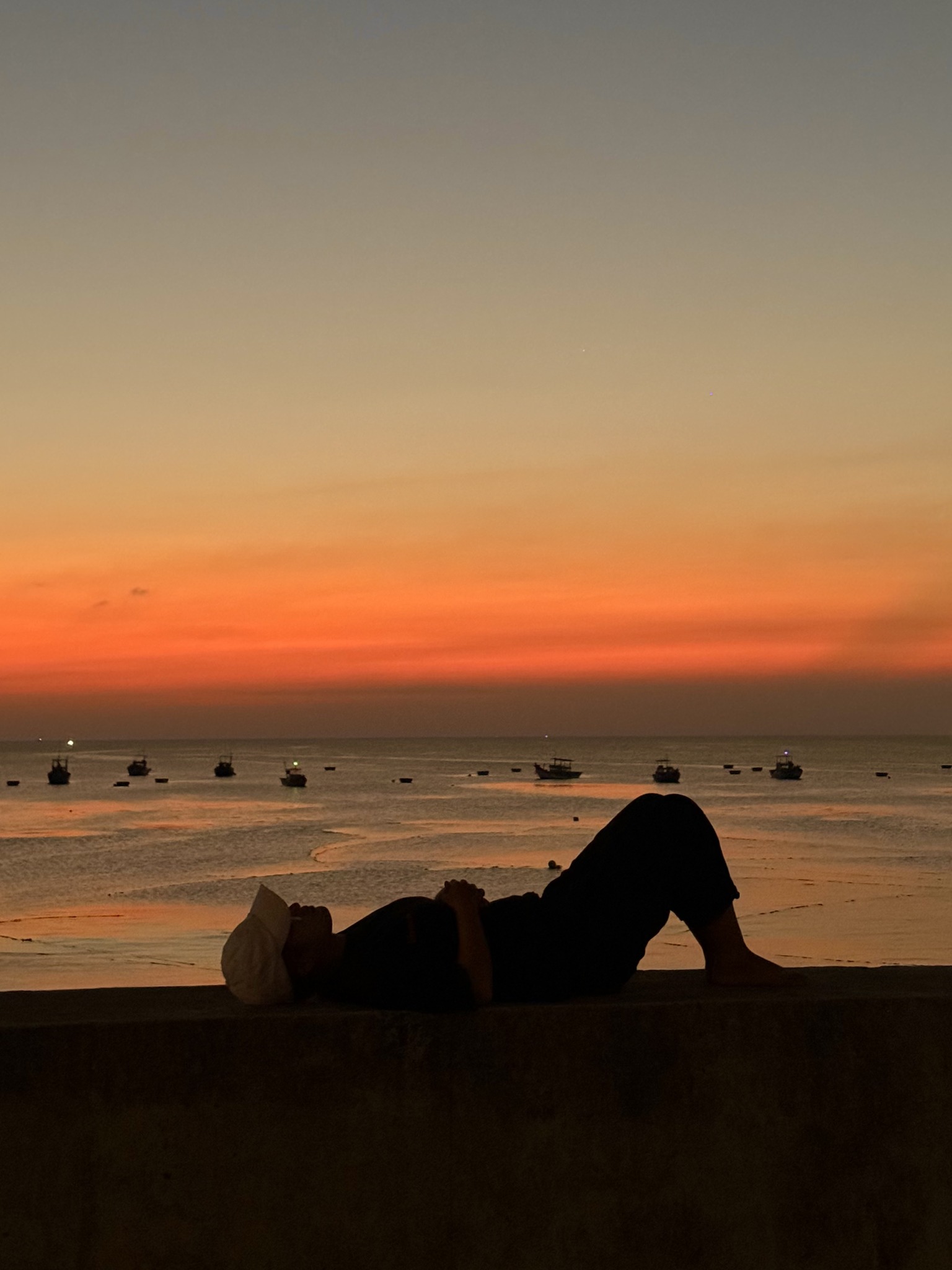 Dù bận rộn đến đâu nhưng mỗi chiều mình đều cố gắng chạy xe ra bờ biển để ngắm hoàng hôn, ngắm nhìn cảnh mặt trời lặn xuống biển và tận hưởng những váng trời cuối cùng còn sót lại đến tối mịt mới về.