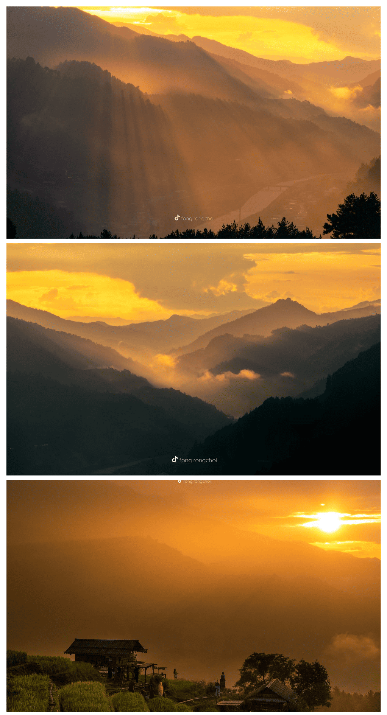 Từ hoàng hôn phủ ánh vàng trên những ruộng lúa, cầu vồng sau mưa, đến đêm trời sao rực sáng.