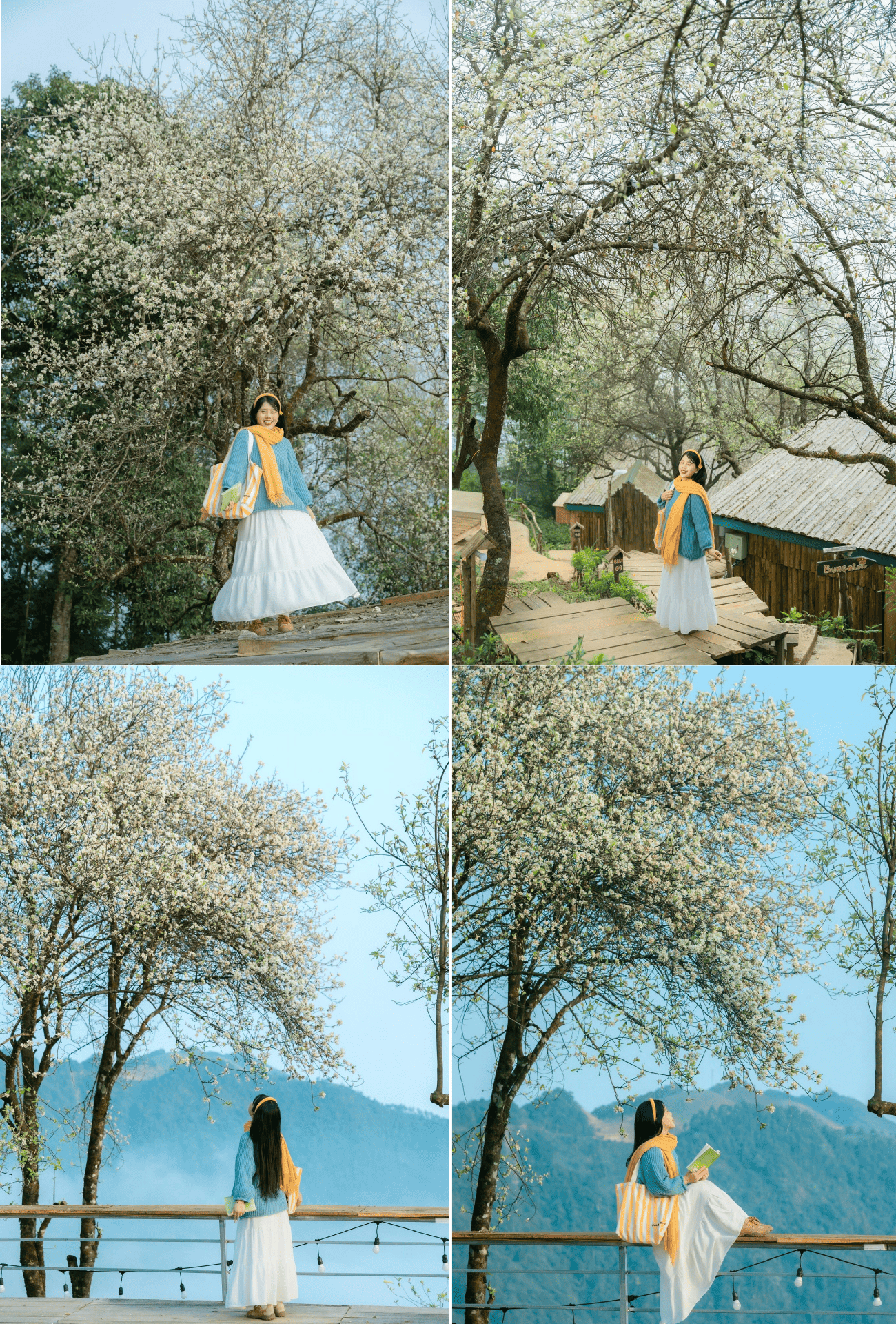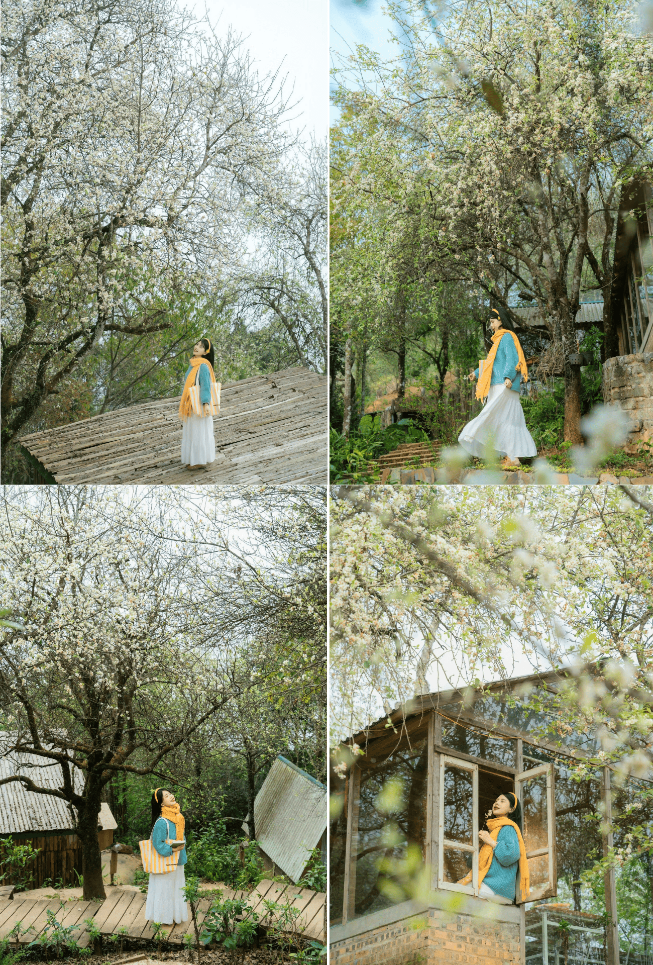 - Happy town Tà Xùa (homestay trên Đỉnh Gió, có thể xin vào chụp ảnh nếu không lưu trú, cả home đang nở trắng hoa)