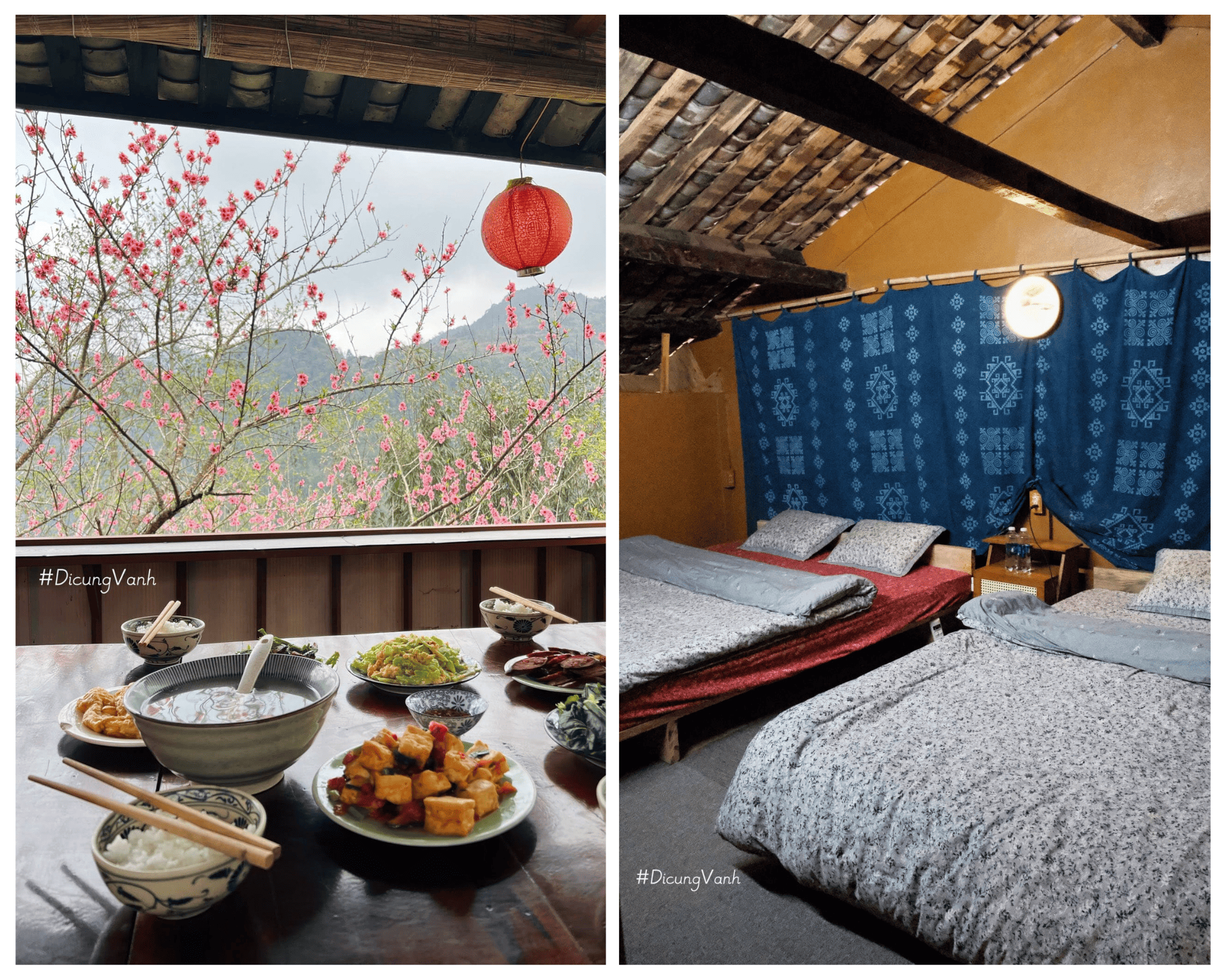 Tụi mình ở lại Núi Hoa - Flower Moutain một đêm, chiếc home dưới tán hoa đào xinh iu. Ngồi ăn cơm trưa ngay trước mắt là hoa đào. Buổi tối tụi mình ăn lẩu bò Trung Hoa Cao Mã . Cách home 1 đoạn có vườn đào thu vé vào check in 30k/ng (có đồ cho thuê luôn nhegg) . Đi dọc con đường từ vườn hoa tới đồn biên phòng Tùng Vài sẽ bắt gặp rất nhiều hoa đào, lê đang nở luôn. Tới check in cột mốc 291 mn có thể ghé thăm các chú biên phòng ở đó nha, các chú siêu nhiệt tình tụi mình tới các chú còn mời vô ăn bánh, uống trà.