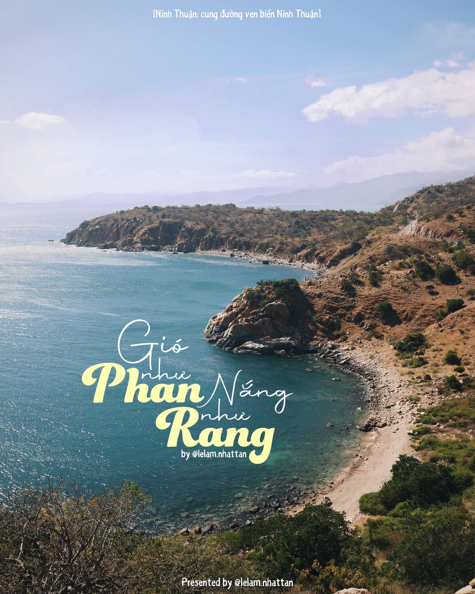 Từ Cà Ná, mình đi dọc cung đường biển Ninh Thuận - ĐT701 để hướng về thành phố Phan Rang - Tháp Chàm. Đặt chân lên mảnh đất này rồi mình mới hiểu danh bất hư truyền của câu slogan "Gió như Phan - Nắng như Rang" là như thế nào. Gió từng cơn cứ phang vô mặt, giữa cái nắng gay gắt như muốn cháy da thịt.